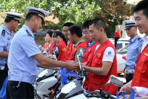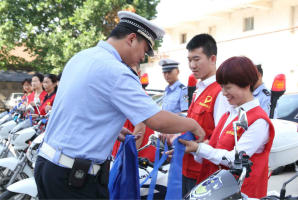昌邑義工與交警發(fā)起“藍(lán)絲帶”愛心送考行動